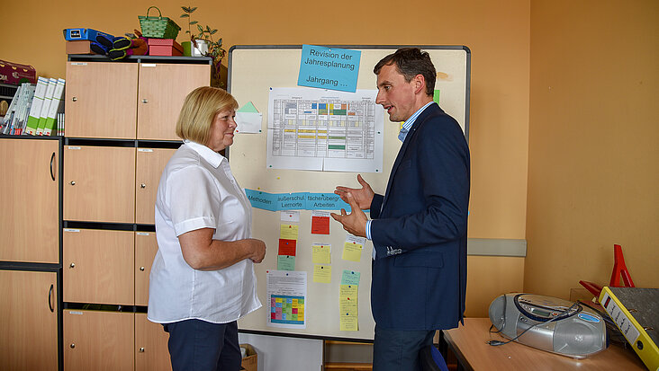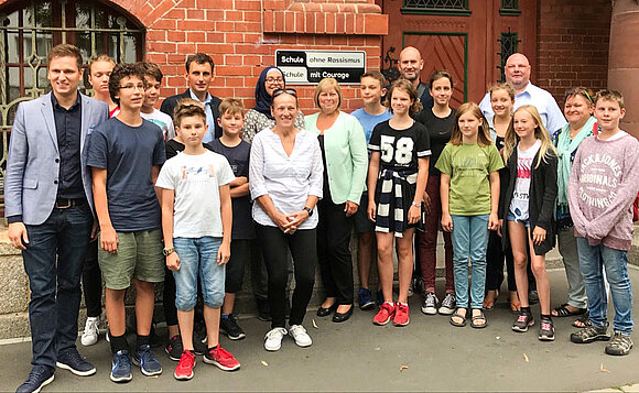 Anmerkung:Landtagspräsidentin Gabriele Brakebusch hat die Patenschaft für das Projekt „Schule ohne Rassismus“ am NSG Halle übernommen. Foto: Landeszentrale für politische Bildung