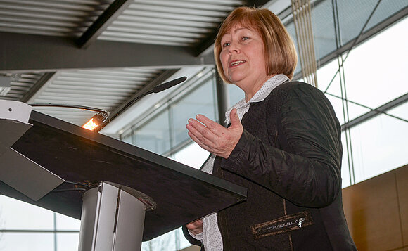 Anmerkung:Landtagspräsidentin Gabriele Brakebusch während ihres Grußworts zur Verleihung des Titels „Schule ohne Rassismus“ in Anhalt-Bitterfeld. Foto: LpB