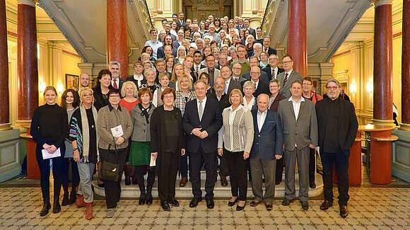 Auf Einladung von Landtagspräsidentin Gabriele Brakebusch und Ministerpräsident Dr. Reiner Haseloff nahmen am Samstag, 1. Dezember 2018, rund 100 ehrenamtlich engagierte Menschen aus ganz Sachsen-Anhalt an einem Empfang in der Staatskanzlei teil. Die Eingeladenen repräsentieren ein breites Spektrum ehrenamtlicher Tätigkeit. Unter anderem engagieren sie sich in der Bildungsarbeit, in der Flüchtlingshilfe, im Sport, im kirchlichen, sozialen und karitativen Bereich sowie der Politik.