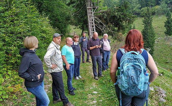 Anmerkung:Beim Ausflug in den Nationalpark Triglav informierten sich die Abgeordneten über das Thema Co-Existenz von Weidewirtschaft und Großwildtieren. Foto: Ulrike Brandt/Landtag