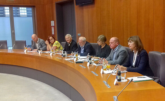 Anmerkung:Die Delegation des Umweltausschusses während einer Sitzung mit Kollegen des Slowenischen Parlaments. Foto: Ulrike Brandt/Landtag