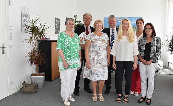 Anmerkung:Im Vorfeld des Empfangs erfolgte die Unterzeichnung zweier neuer Patenschaftsverträge mit zwei Firmen aus Halle (Saale) im Beisein von Landtagspräsidentin Gabriele Brakebusch (3.v.l.). Foto: Stefanie Böhme