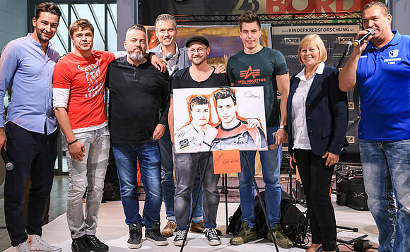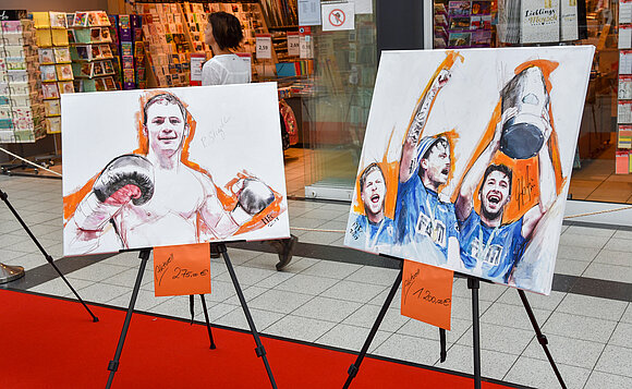 Alle Bilder waren in den vergangenen vier Wochen im Magdeburger Börde-Park in einer Leinwandausstellung zu sehen. Im großen Finale der Aktion am 19. September 2019 wurden die Bilder mit originalen Unterschriften der gemalten Persönlichkeiten versteigert. Der Erlös von über 14 600 Euro geht zu 100 Prozent an die Mitteldeutsche Kinderkrebsforschung.