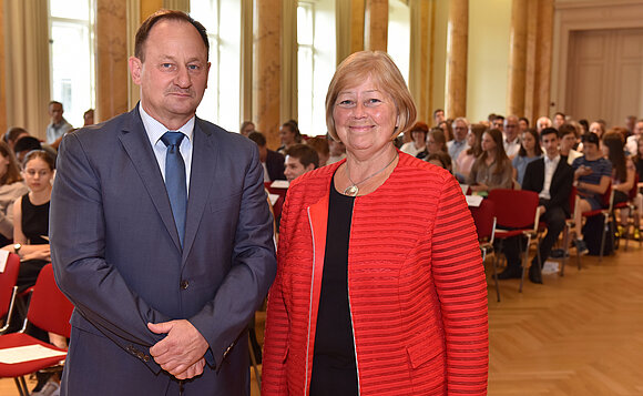 Anmerkung:Landtagspräsidentin Gabriele Brakebusch und der Präsident der Industrie- und Handelskammer Halle-Dessau, Prof. Dr. Steffen Keitel, beim Preisträgerkonzert. Foto: IHK Halle-Dessau/Michael Deutsch