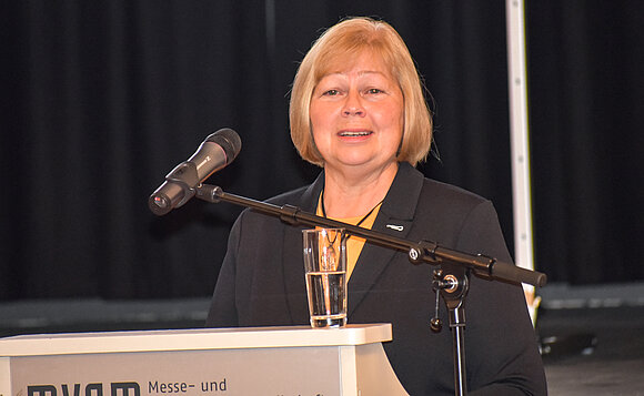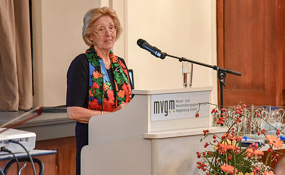 Anmerkung:Die Vorsitzende der Bundesarbeitsgemeinschaft der Landesseniorenvertretungen Helga Engelke sprach ein Grußwort bei der Festveranstaltung in Magdeburg. Foto: Stefan Müller