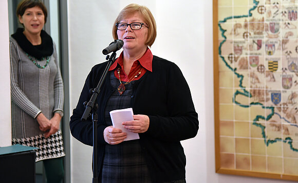 Anmerkung:Landtagspräsidentin Gabriele Brakebusch empfing die Gäste im Foyer vor ihrem Amtszimmer. Foto: Stefan Müller