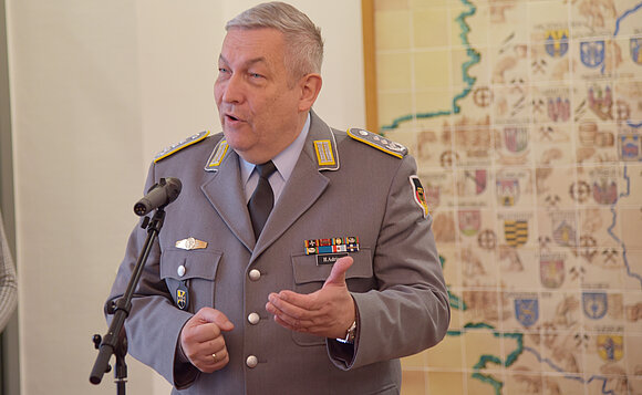 Anmerkung:Oberst Halvor Adrian, Kommandeur des Landeskommandos Sachsen-Anhalt, lobte die ehrenamtliche Sammelarbeit. Foto: Stefan Müller