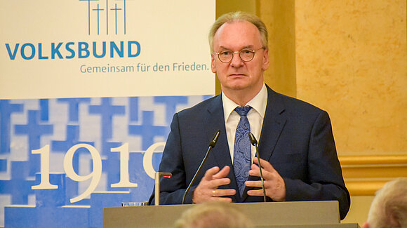 Ministerpräsident Dr. Reiner Haseloff sprach beim Festakt zu 100 Jahre Volksbund Deutsche Kriegsgräberfürsorge. Foto: Stefan Müller