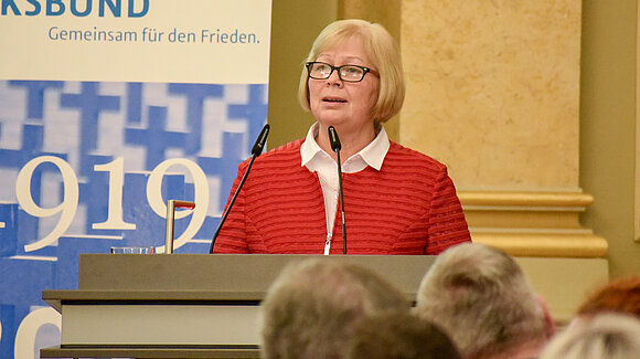 Landtagspräsidentin Gabriele Brakebusch sprach beim Festakt zu 100 Jahre Volksbund Deutsche Kriegsgräberfürsorge. Foto: Stefan Müller