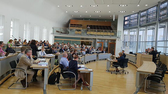 Zahlreiche Anzuhörende haben die Gelegenheit genutzt und ihre Meinung zum "Grünes-Band-Gesetz" geäußert. Daher fand die Anhörung des Umweltausschusses im Plenarsaal des Landtags statt. Foto: Stefanie Böhme
