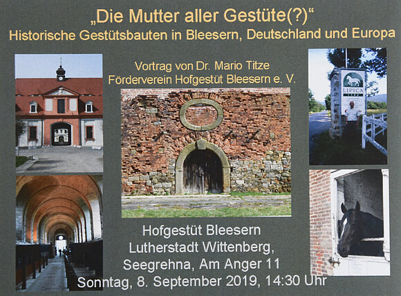 Bleesern, das ehemalige Hofgestüt der Kurfürsten von Sachsen, ist das älteste Gestüt Europas, ein welterbeverdächtiges Bauwerk zwischen Wittenberg und Wörlitz und immer noch ein Geheimtipp für Architektur- und Geschichtsinteressierte. Bleesern ist nicht nur ein bedeutender Ort der Pferdezucht, Vorbild für das von Matthäus Daniel Pöppelmann geplante Graditz, sondern auch hochrangiges Denkmal des Barockzeitalters, ein Schauplatz der Reformationsgeschichte und der Aufenthaltsort vieler bedeutender Persönlichkeiten.