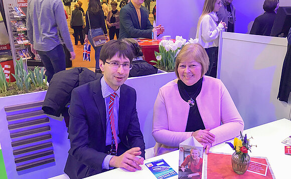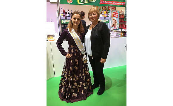 Anmerkung:Landtagspräsidentin Gabriele Brakebusch traf auf der Grünen Woche auch einige königliche Hoheiten, hier die amtierende Heidekönigin. Foto: Katja Schmidt/Landtag von Sachsen-Anhalt