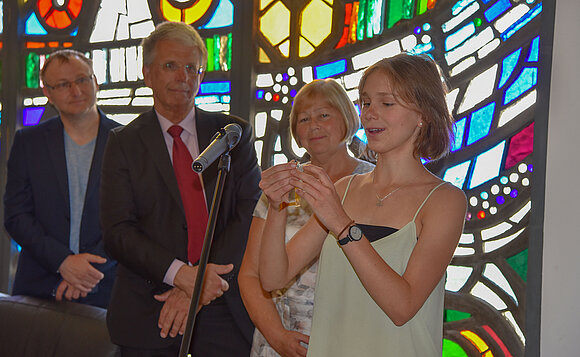 Anmerkung:Anja Sack aus Naumburg hat im Bereich Physik mit Linsen ohne Fassungselemente für leichtere Objektive experimentiert. Foto: Stefanie Böhme