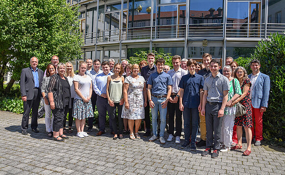 Anmerkung:Erinnerungsfoto "Jugend forscht 2019" im Innenhof des Landtags von Sachsen-Anhalt. Foto: Stefanie Böhme