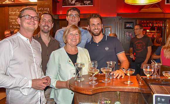 Anmerkung:In lockerer Atmosphäre (an der Theke) sprachen die jungen Visionäre und Landtagspräsidentin Gabriele Brakebusch über ihre Vorstellungen für ein modernes und erfolgreiches Sachsen-Anhalt. Foto: Stefanie Böhme