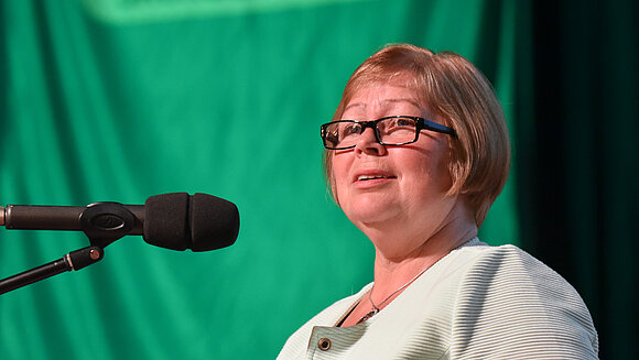 Landtagspräsidentin Gabriele Brakebusch bei ihrem Grußwort beim Landesjagdverband Sachsen-Anhalt in Wernigerode. Foto: Sebastian Kapuhs/Landesjagdverband