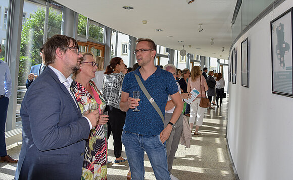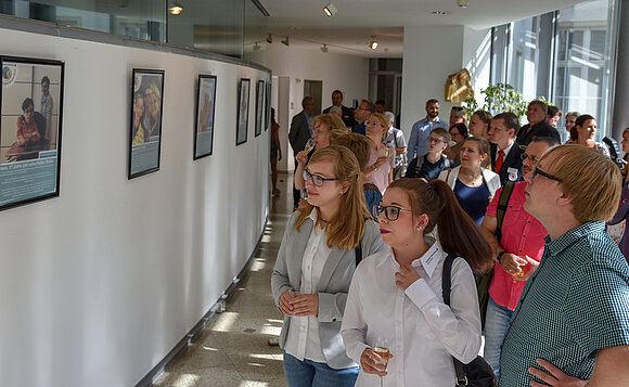 Anmerkung:Die 30 Gesichter und Geschichten aus dem KiSO haben das ein oder andere Gespräch unter den Gästen initiiert. Foto: Stefanie Böhme