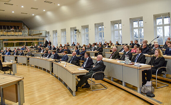 Anmerkung:Vollbesetzte Reihen im Plenarsaal des Landtags in Magdeburg am Volkstrauertag 2019. Foto: Stefan Müller