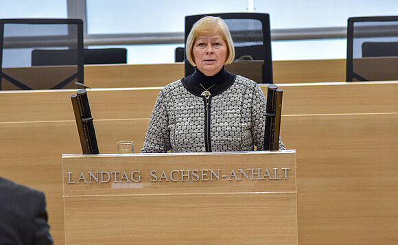 Anmerkung:Landtagspräsidentin Gabriele Brakebusch sprach das Totengedenken. Foto: Stefan Müller