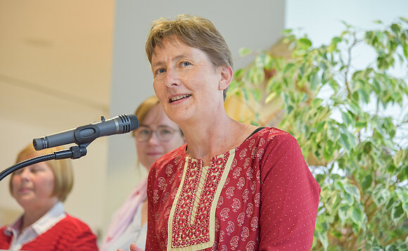 Anmerkung:Eva von Angern, Vorsitzende des Landesfrauenrats von Sachsen-Anhalt, bei der Ausstellungseröffnung. Foto: Stefan Müller