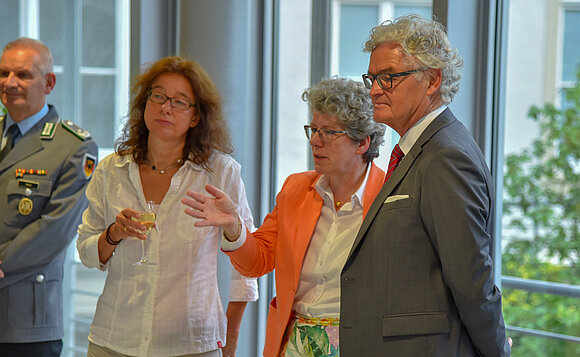 Anmerkung:Die Fotografin Sabine Felber (l.) mit Justizministerin Anne-Marie Keding und Lothar Franzkowiak, Präsident des Landesverfassungsgerichts von Sachsen-Anhalt, beim Ausstellungsrundgang. Foto: Stefan Müller