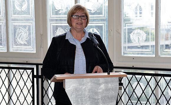 Anmerkung:Landtagspräsidentin Gabriele Brakebusch während der Eröffnung der Ausstellung zum Bauhaus in Tel Aviv. Foto: Stefan Müller