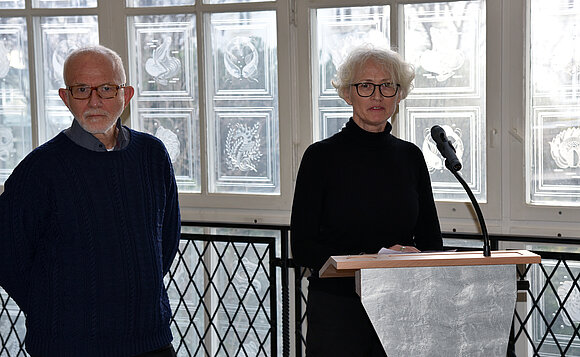 Anmerkung:Die beiden Ausstellungsmacher Ingrid Botschen und Michael Craig Palmer während der Eröffnung der Ausstellung zum Bauhaus in Tel Aviv. Foto: Stefan Müller