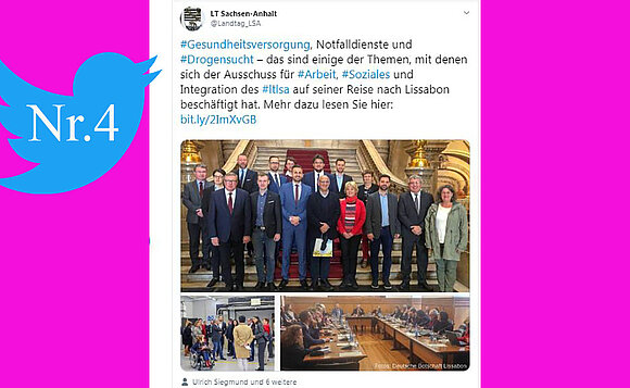 Anmerkung:Nur knapp am Podestplatz vorbeigschrammt ist ein Tweet zu einer Reise des Ausschusses für Arbeit, Soziales und Integration im April 2019.