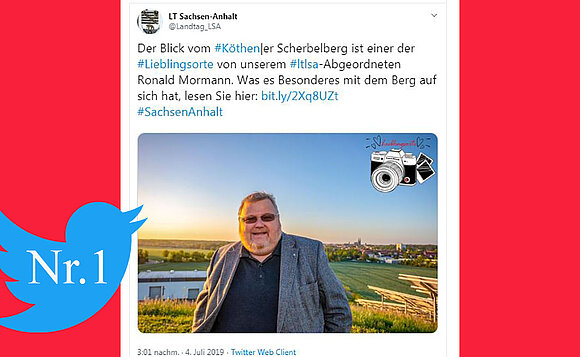 Anmerkung:And the winner is... Ein Tweet aus unserer Sommerserie „Lieblingsorte der Abgeordneten“. Die Serie war im Allgemeinen sehr beliebt, dieser Tweet über den Köthener Scherbelberg hat jedoch besonders viele Menschen erreicht und sich damit Platz 1 geholt.