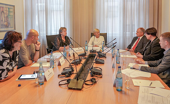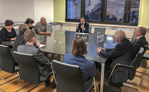 Anmerkung:Die Ausschussdelegation im Informationsgespräch mit Veronika Pfeifer. Foto: Noreen Neumann-Hagnbuchner