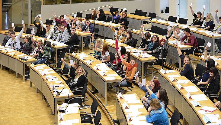 Das Besuchsangebot richtet sich an Schulklassen ebenso wie an Erwachsenengruppen. Um auch dem Nachwuchs einen Eindruck von der politischen Arbeit eines Parlaments zu verschaffen, bietet der Besucherdienst auch Führungen für Grundschulkinder (ab der 3. Klasse) an. Leicht verständlich, dabei aber spannend und informativ sind die Führungen durchs Haus und bieten sicherlich viel Gesprächsstoff für den folgenden Unterricht.