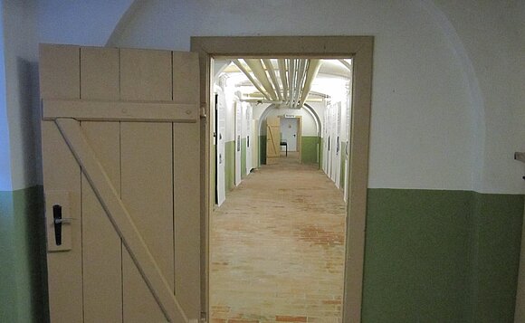Anmerkung:Blick durch den Kellergang in der Bernburger Einrichtung. Foto: Stefan Müller