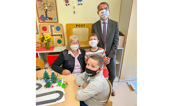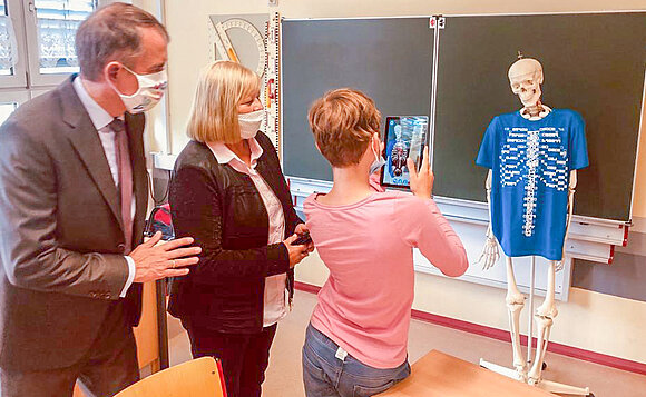 Anmerkung:Landtagspräsidentin Gabriele Brakebusch und Bildungsminister Marco Tullner erhielten einen Einblick in den Lehr- und Lernbetreib an der Netzwerkschule. Foto: privat