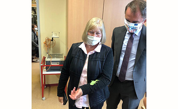 Anmerkung:Tierisch, tierisch: Landtagspräsidentin Gabriele Brakebusch und Bildungsminister Marco Tullner erhielten einen Einblick in den Lehr- und Lernbetreib an der Netzwerkschule. Foto: privat