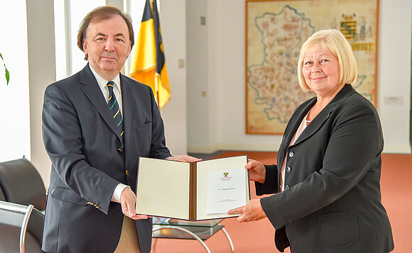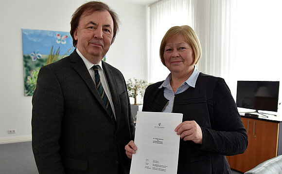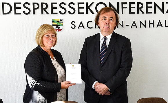 Anmerkung:Zur Erinnerung an seine langjährige Tätigkeit als oberster Datenschützer des Landes haben wir eine kleine Bildergalerie für Dr. Harald von Bose zusammengestellt. 15 Jahre lang übergab er seine Tätigkeitsberichte an die jeweiligen Landtagspräsidenten. Hier 2019 an Landtagspräsidentin Gabriele Brakebusch. Archiv-Foto: Stefan Müller