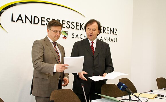 Anmerkung:Zur Erinnerung an seine langjährige Tätigkeit als oberster Datenschützer des Landes haben wir eine kleine Bildergalerie für Dr. Harald von Bose zusammengestellt. 15 Jahre lang übergab er seine Tätigkeitsberichte an die jeweiligen Landtagspräsidenten. Hier 2015 an den damaligen Landtagspräsidenten Detlef Gürth. Archiv-Foto: Stefan Müller