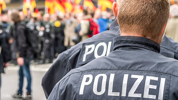 Die Polizei bewacht eine Demonstration von Rechtsradikalen. Foto: fotolia.com
