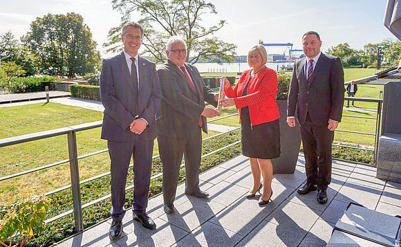 Anmerkung:Staffelstab wurde übergeben: Sachsen-Anhalt Landtagspräsidentin Gabriele Brakebusch und Direktor Dr. Torsten Gruß haben in Kiel den Staffelstab der Konferenzen der deutschen Landesparlamente an den Präsidenten und den Direktor des Schleswig-Holsteinischen Landtags übergeben. Foto: Landtag Schleswig-Holstein