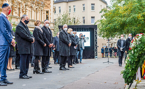 Anmerkung:Gedenken in Halle: Die fünf Fraktionen führten in der Oktober-Sitzungsperiode eine Vereinbarte Debatte zum Thema „Ein Jahr nach Halle – erinnern und handeln!“. Foto: Staatskanzlei/Jens Schlüter