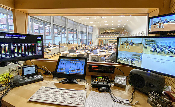 Anmerkung:Landtagsgeschichte in Bild und Ton: Fans historischer Aufnahmen kommen im Landtagsarchiv voll auf ihre Kosten, denn hier werden Aufzeichnungen aller Plenarsitzungen seit 1993 in einem digitalen Videoarchiv zusammengetragen. Foto: Stefan Müller