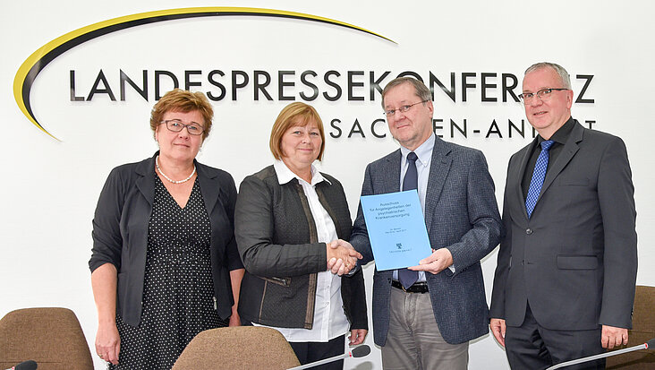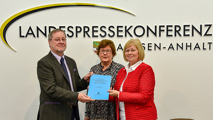 © ltlsa© ltlsaAnmerkung:Univ.-Prof. Dr. med. Hans-Henning Flechtner (r.) überreicht 2012 als Ausschussvorsitzender den aktuellen Bericht an Landtagspräsident Detlef Gürth (M.) und Sozialminister Norbert Bischoff.