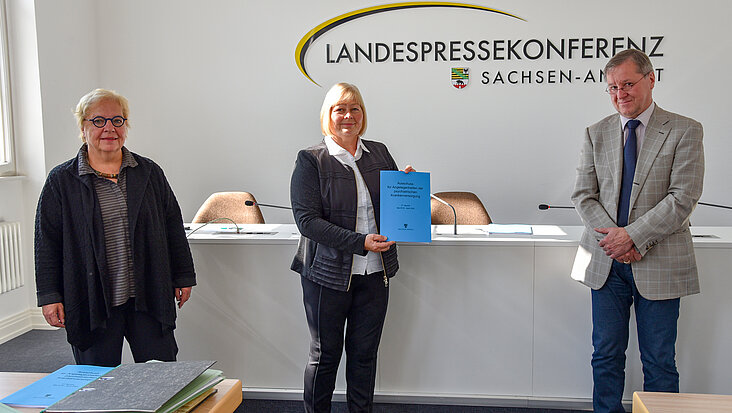 © ltlsa/smü© ltlsa/smüAnmerkung:Der Ausschussvorsitzende Prof. Dr. Henning Flechtner (l.) übergibt 2022 den 29. Bericht an Landtagspräsident Dr. Gunnar Schellenberger und Sozialministerin Petra Grimm-Benne.