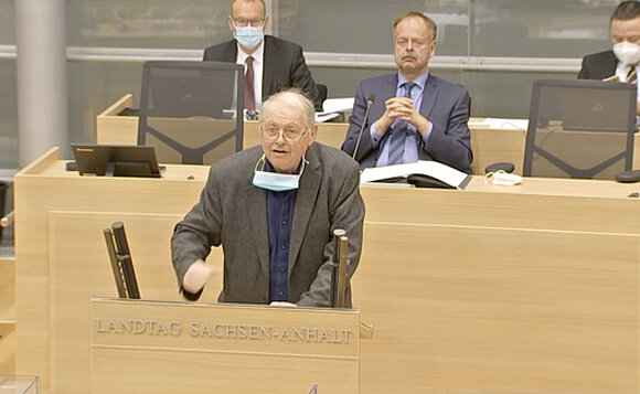 Oliver Kirchner (AfD) erklärte, er werde sich nicht bei Ministerpräsident Haseloff für die Lockerungen von Unfreiheiten bedanken. Die Welt werde von den Füßen auf den Kopf gestellt und die Ausnahmesituation werde zu einem Normalzustand erklärt. Viele Unternehmen würden sich nicht mehr erholen, Menschen hätten Angst um ihre Arbeit und vor der Zukunft. Haseloff gehe es um den Machterhalt und die Spaltung der Gesellschaft, meinte Kirchner. Mit seinen Maßnahmen sei der Ministerpräsident „auf den totalitären Geschmack gekommen“ und das lehne seine Fraktion entschieden ab. Die AfD-Fraktion plädiert für einen effektiven Schutz der Risikogruppen und einen Impfstoff für alle Impfwilligen. Ministerpräsident Haseloff solle sowohl den Lockdown als auch die „Verordnungsdemokratie“ beenden.