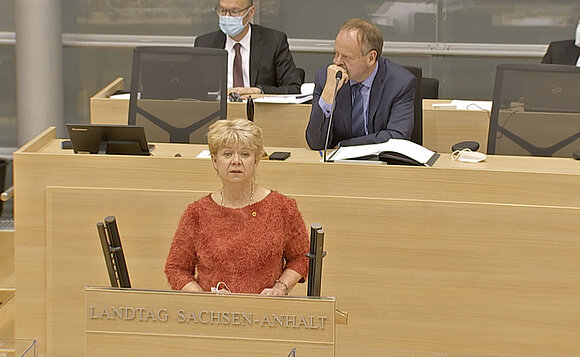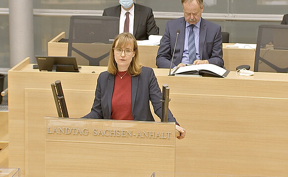 Anmerkung:Cornelia Lüddemann (BÜNDNIS 90/DIE GRÜNEN) während der Debatte zum Sachsen-Anhalt-Plan. Foto: Landtag/Screenshot