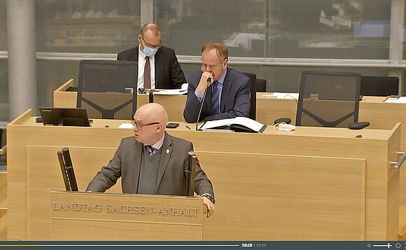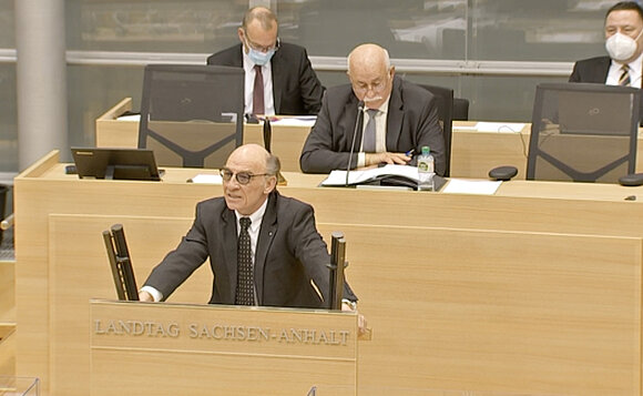 Anmerkung:Robert Farle (AfD) während der Debatte zum Sachsen-Anhalt-Plan. Foto: Landtag/Screenshot