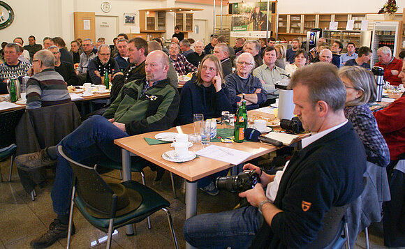 Anmerkung:Das Reizthema Wolf sorgte für einen sehr gut besuchten Schäferstammtisch in Niederdodeleben. Etwa 100 Berufs- und Hobbyschäfer waren der Einladung des Landesbauernverbands gefolgt. Foto: Stefanie Böhme