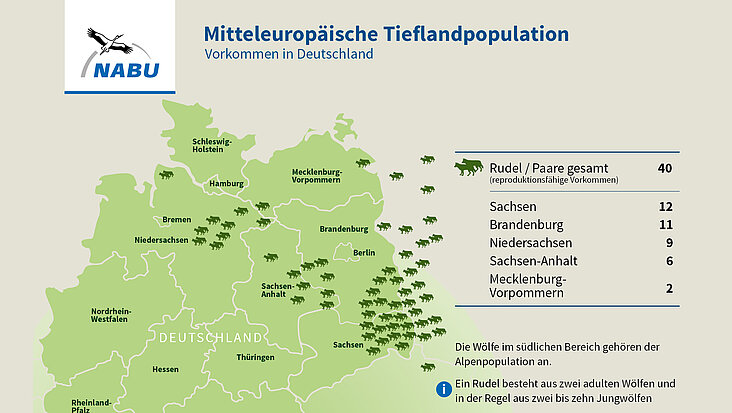 Anmerkung:Experten zufolge sind die Zahlen aus der Grafik schon wieder leicht überholt. Derzeit halten sich bereits 12 Rudel und ein Wolfspaar in Sachsen-Anhalt und den angrenzenden Bundesländern auf. Das sind etwa 70 bis 80 Wölfe. Grafik: Landtag