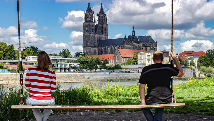 Einfach mal die Seele baumeln lassenDie Elbschaukel schräg gegenüber vom Magdeburger Dom gehört zu den Lieblingsorten von Olaf Meister (Grüne).