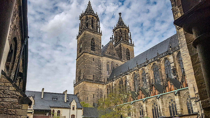 Im Kreuzgang gen Himmel schauenDen Blick auf die Türme des Magdeburger Doms genießt Tobias Krull (CDU). Hier ist sein Lieblingsort.
