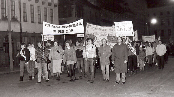 Demonstration gegen das SED-Regime und für eine gewaltfreie Veränderung des Landes im Oktober 1989 in Aschersleben. Foto: privat